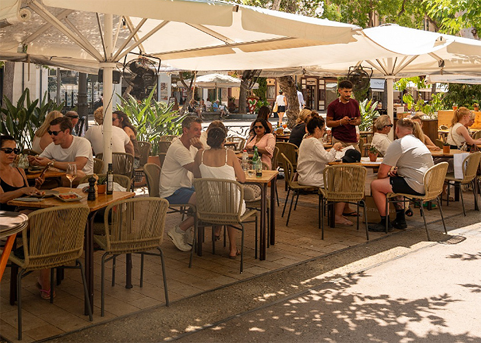 Situated on Paseo Vara de Rey, La Cava has established itself as a must-visit among Ibiza cafés. Its spacious, sun-filled terrace becomes a true urban viewpoint from which to observe the city’s daily rhythm. Families, tourists, artists and locals all come together in this lively space offering homemade pastries, quality coffee, varied brunch options and savoury dishes for any time of day.
