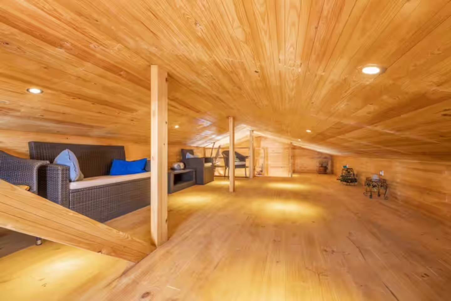 Outside, the private swimming pool and play area invite guests to enjoy relaxing family afternoons, sunbathe, and make the most of the peaceful outdoor setting.