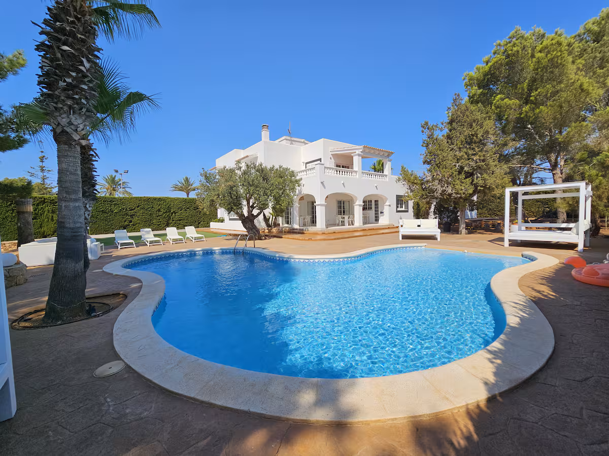 Villa Oasis is a stunning modern Ibizan-style property — spacious, bright, and designed for comfort. Conveniently located just 2 km from Sant Jordi village, 3.5 km from Playa d’en Bossa, and less than 10 minutes from iconic beaches like Sa Caleta and Cala Jondal.