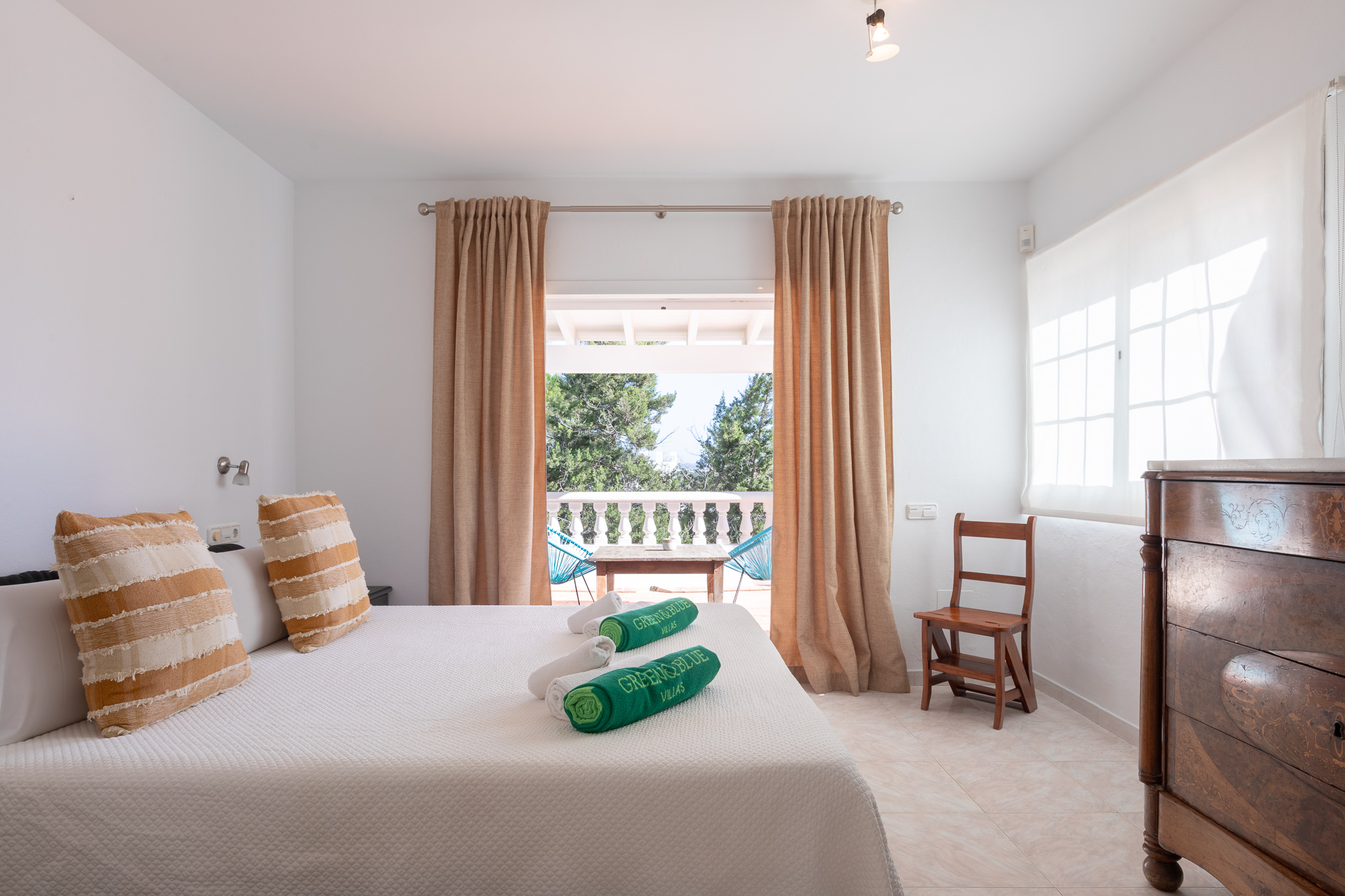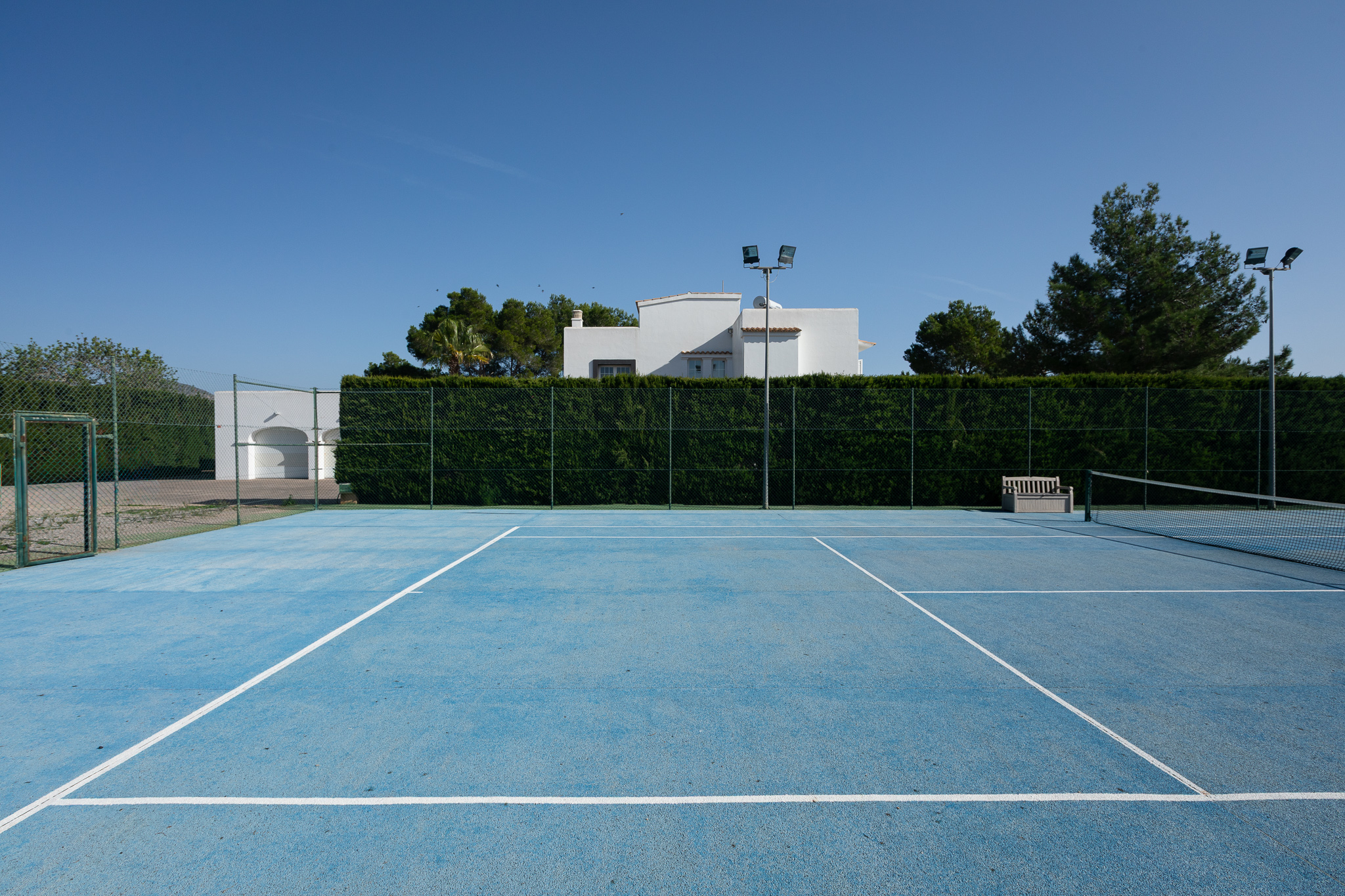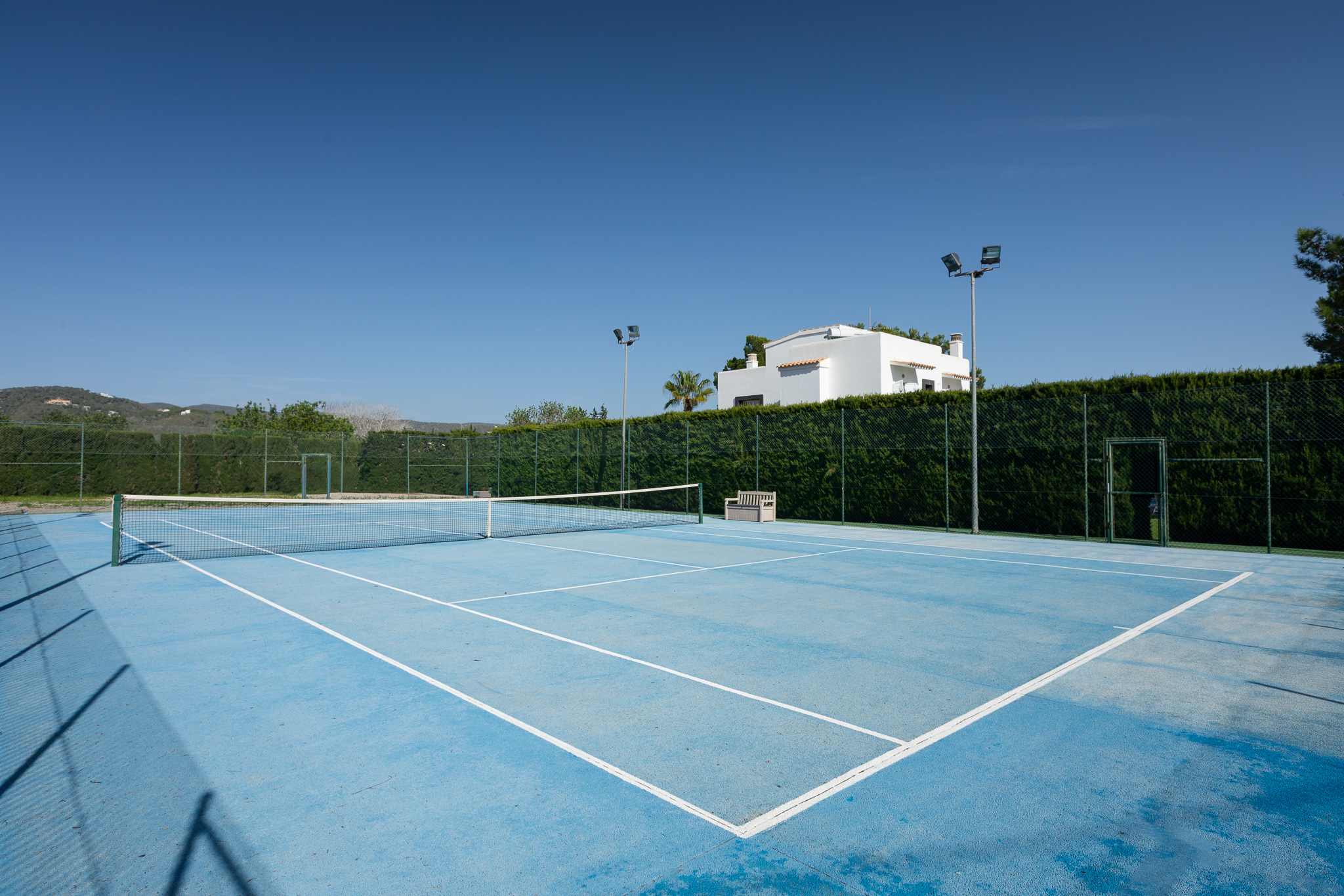 Outside, guests can enjoy large terraces overlooking the garden, a beautiful private pool with sun loungers, a chill-out area, al fresco dining space, and a tennis court (available at an additional cost). Surrounded by lush Mediterranean gardens, Villa Oasis offers the perfect setting for a relaxing and exclusive holiday close to Ibiza Town and the island’s most popular spots.
