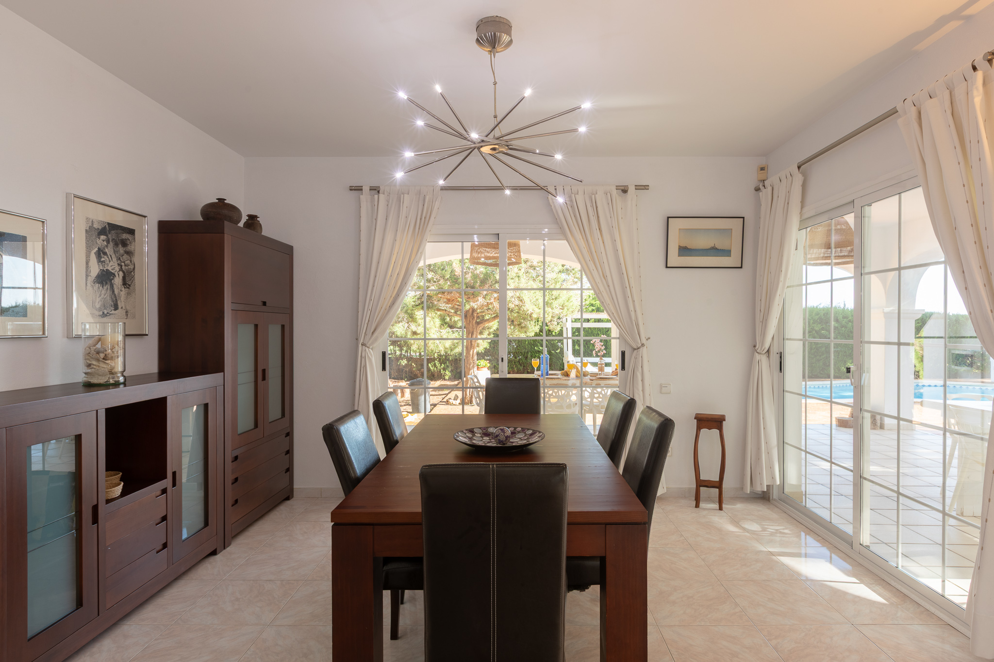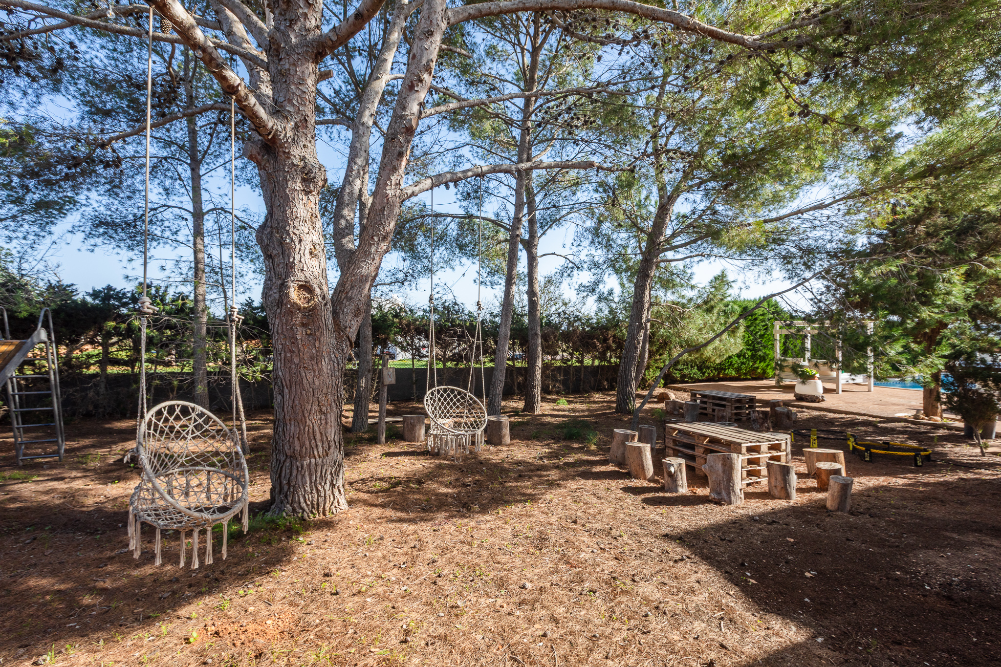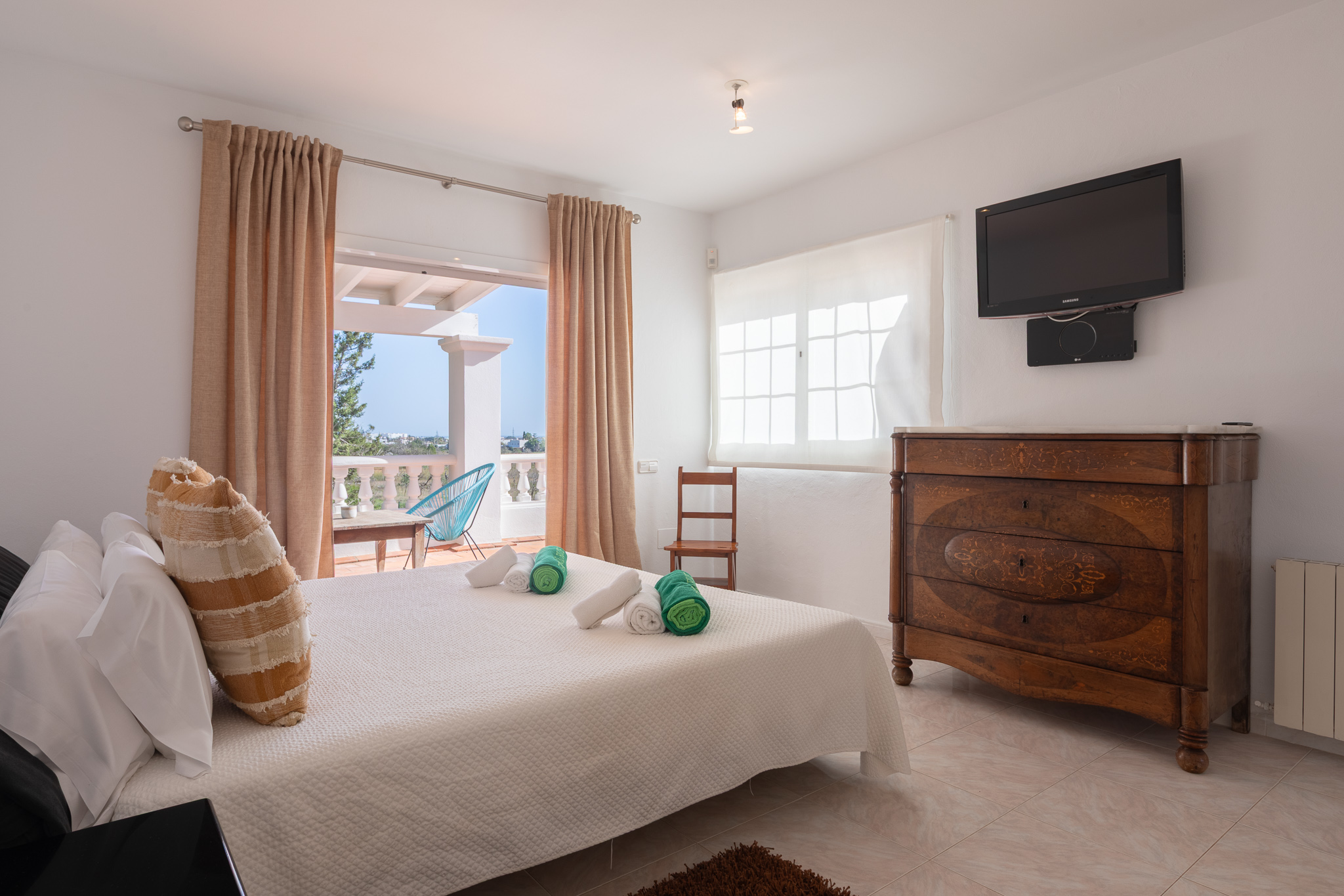Outside, guests can enjoy large terraces overlooking the garden, a beautiful private pool with sun loungers, a chill-out area, al fresco dining space, and a tennis court (available at an additional cost). Surrounded by lush Mediterranean gardens, Villa Oasis offers the perfect setting for a relaxing and exclusive holiday close to Ibiza Town and the island’s most popular spots.